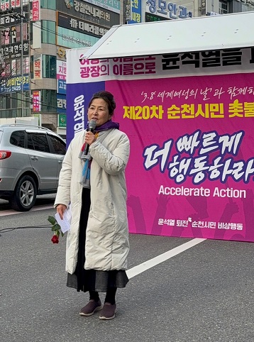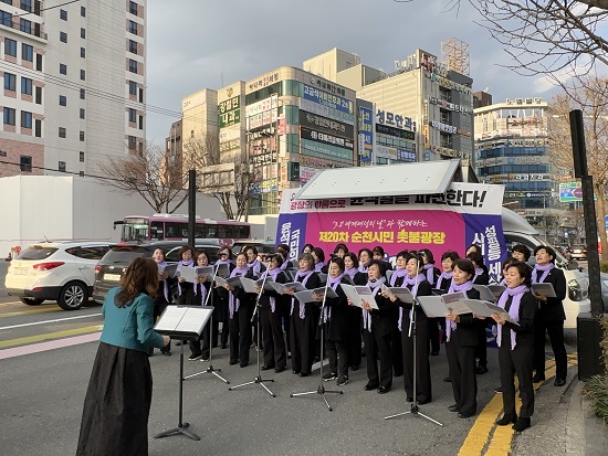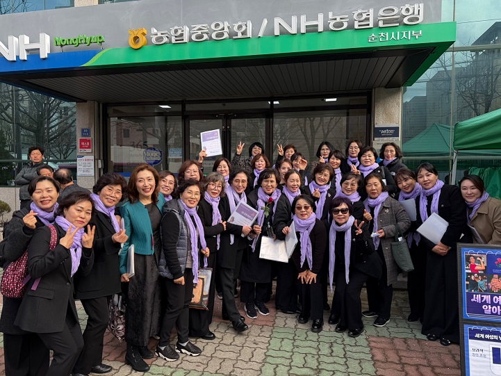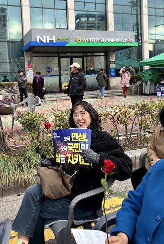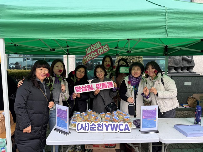 <3월 8일(토) 세계여성의 날을 맞아 빵과 장미꽃을 나누는 행사에 참여하였습니다>